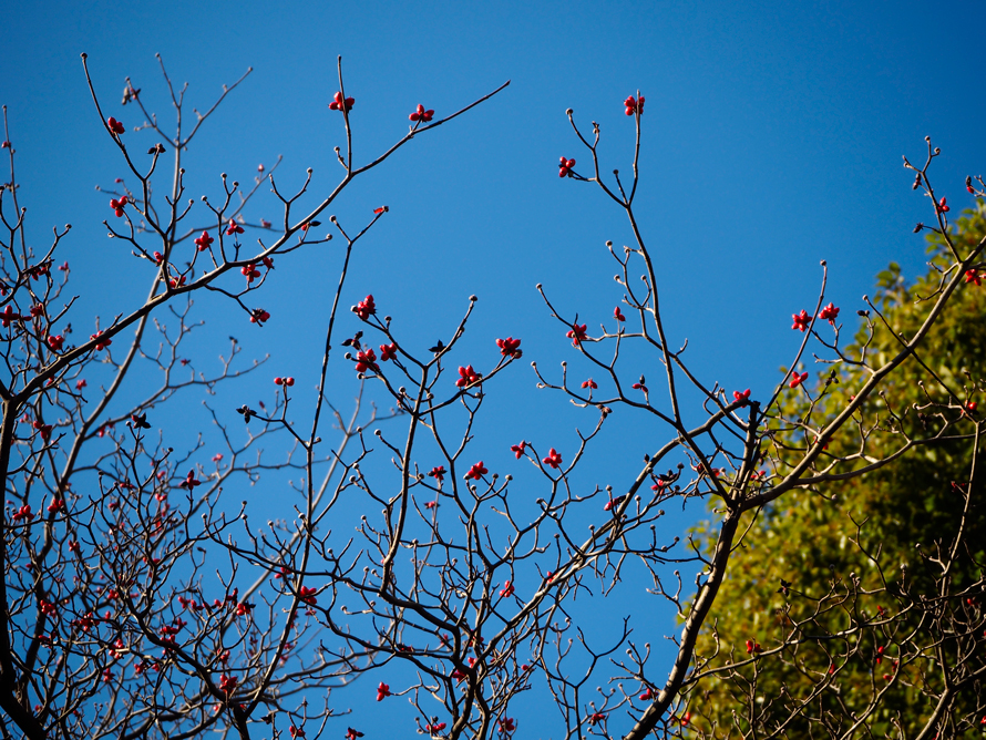 冬の晴れの日は、空気が澄んでいるせいか、空が一層青く感じます。夏には瑞々しい緑の葉をいっぱいにつけていた木々も、紅葉し、やがて散り、枝を残すだけとなりました。