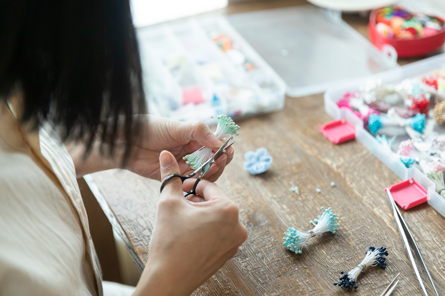 幼い頃から手芸や工作が好きだったというだけあって、これまでいろいろなハンドメイドを経験してきた鳥待月さんですが、中でもつまみ細工がいちばん自分に合っていたと言います。